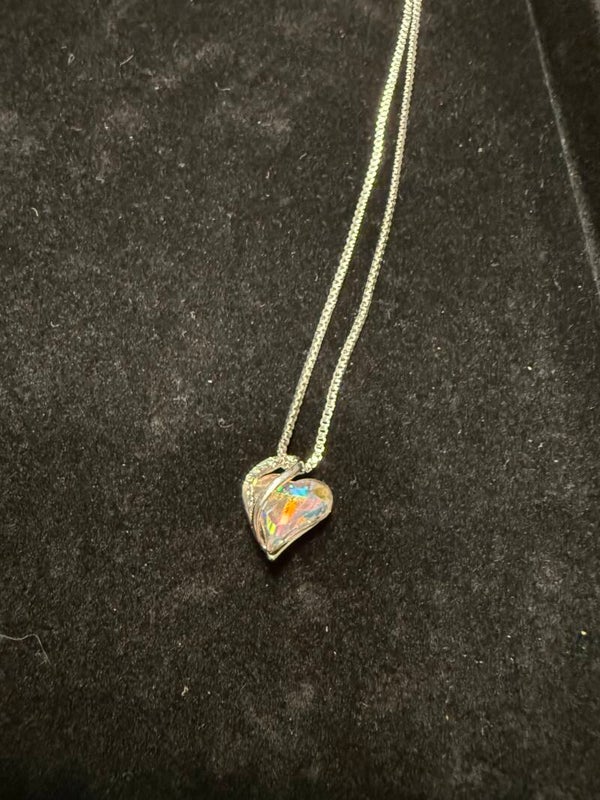 Silberne Kette mit verschiedenen Herzen. Es handelt sich um nickelfreien Modeschmuck.